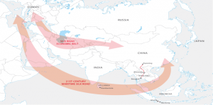 - And a 21st century Maritime Silk Road (MSR) which aims to develop ports across the Indian Ocean.