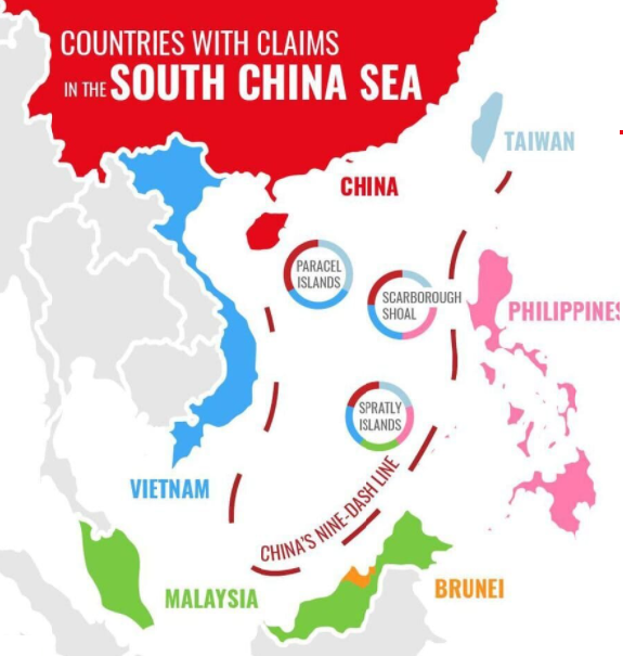 China’s claim overlap the South China Sea areas of different claimants countries, that involve Brunei, Vietnam, Philippines, Taiwan and Malaysia