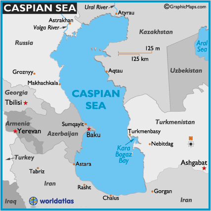 Q.3) Which of the following countries does not touch Caspian Sea: