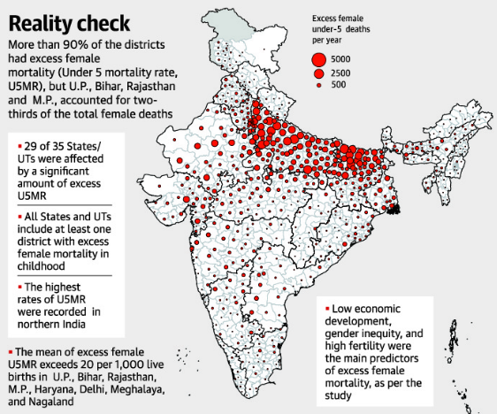 According to recent study of Lancet Global Health, there have been 2,39,000 excess deaths per year of girls under age of five in India due to gender bias.