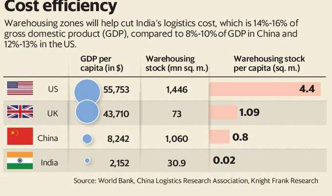 Warehousing zones will help cut India’s logistics cost which is 14%-16% of gross domestic product (GDP) compared to 8%-10% of GDP in China and 12%-13% in the US.