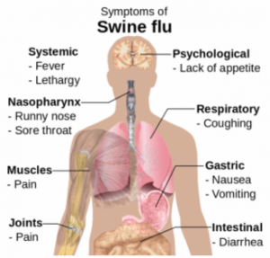 - Swine influenza, also called pig influenza, swine flu, hog flu and pig flu, is an infection caused by any one of several types of swine influenza viruses. Swine influenza virus (SIV) or swine-origin influenza virus (S-OIV) is any strain of the influenza family of viruses that is endemic in pigs.